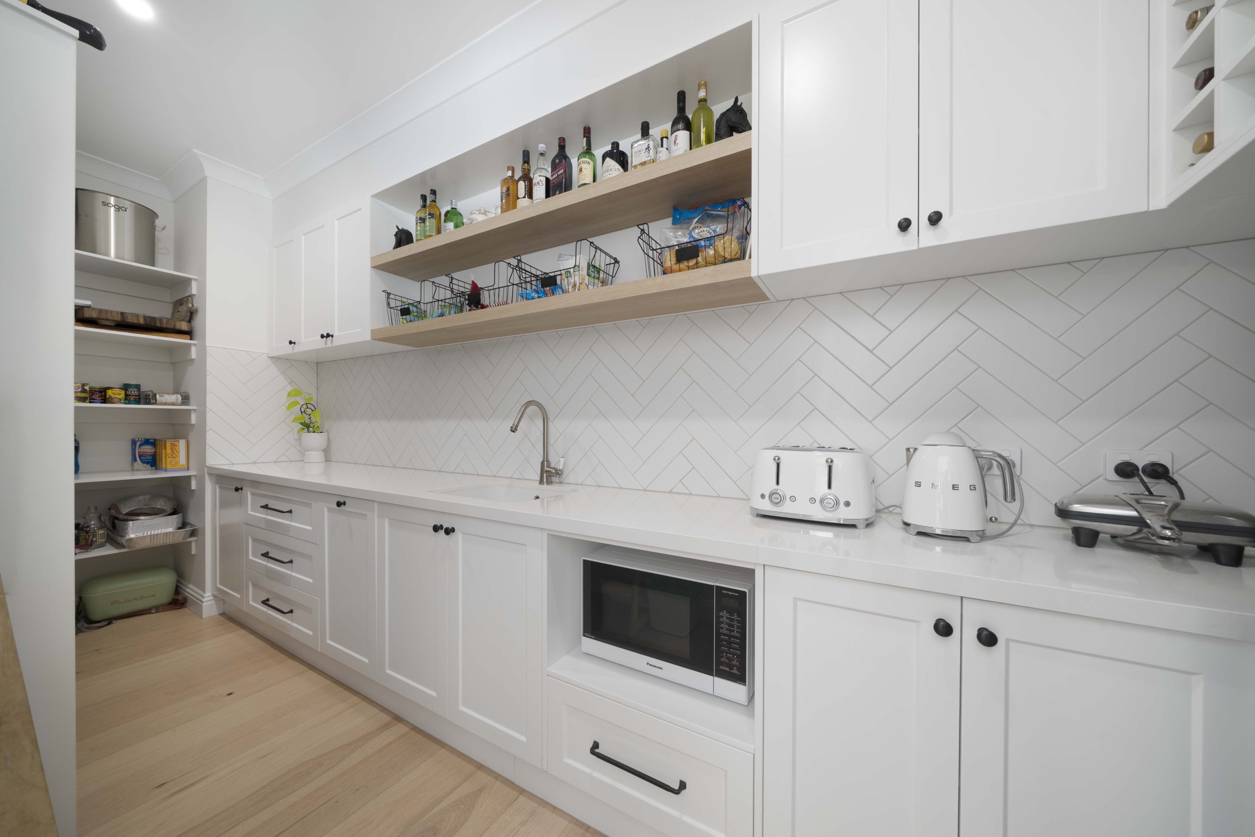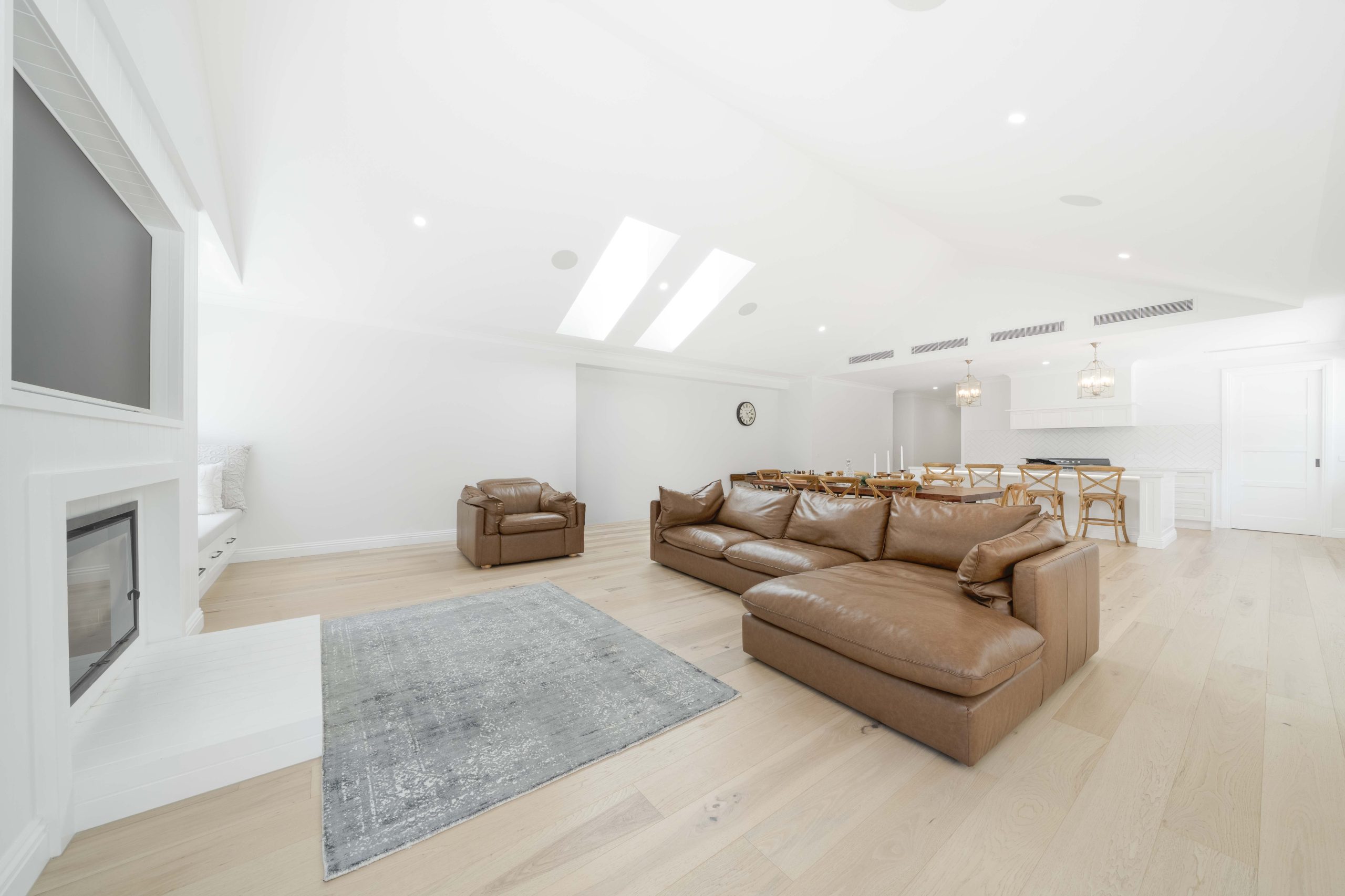 At the heart of the home, open-plan living unfolds with warmth and sophistication. The designer kitchen features quality appliances, generous bench space, and a fully appointed butler’s pantry, and seamlessly connects to the dining and main living zone. A second sizeable living area provides flexibility for families, whether as a media lounge, retreat, or formal sitting room.
