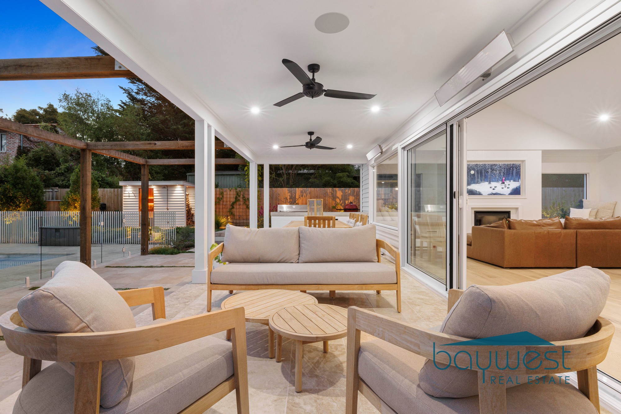 Large sliding doors create a seamless indoor-outdoor flow to the covered alfresco area, complete with outdoor heating, built-in barbecue, and bar fridge – an entertainer’s haven designed for year-round enjoyment.