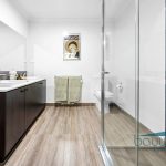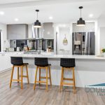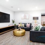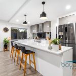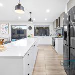 The designer kitchen takes centre stage with white stone counters, sleek soft-closing drawers, spotless appliances, mirrored splashback and a fabulous walk-in pantry with a work station so you can quickly check your emails.